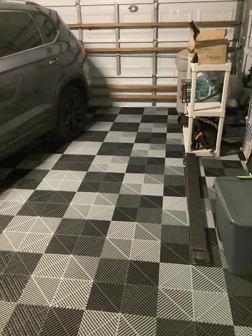 - Small - Average 1 car garage 384 sqft. = 248 tiles (including the suggested, additional 10%)