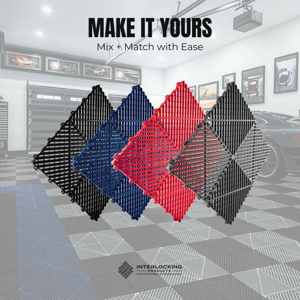 Interlocking Tiles combine bold design with serious durability. Built for garages, showrooms, and beyond, these modular tiles install in hours and can be customized with your colors or logo for a floor that performs as good as it looks.